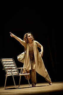 Isabel Teixeira assume essa energia com uma performance de raro domínio técnico. Sua entrega ao texto é total, sem excessos dramáticos, mas com controle absoluto do ritmo e do espaço. Ela se move com liberdade, faz pausas nos momentos certos, e sua interpretação nunca resvala para o sentimentalismo. A atriz compreende a essência do **espetáculo**: um fluxo de consciência que transita entre o humor, a memória e a teatralidade.